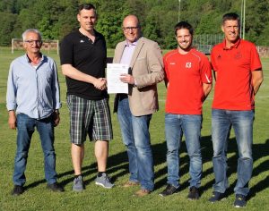 v.l.n.r: Burkhard Balles (VfB-Vorsitzender), Thomas Englert (SVR-Vorsitzender), Jürgen Walter (VfB-Vorsitzender), Moritz Nick (SVR-Abteilungsleiter), Sven Schwarzer (VfB-Abteilungsleiter)
